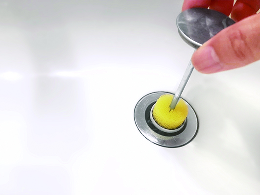 必ず爪楊枝などの尖った先のものでひっかけて取り外してください。手で取り外すとスポンジが奥に入り込んで取りにくくなったり、詰まってしまったりする恐れがあります。