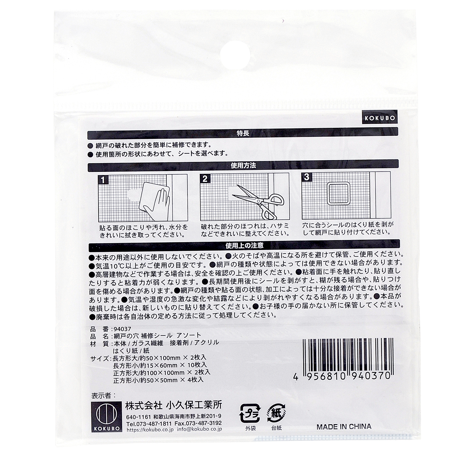 網戸の穴補修シール アソート 品番:94037 JAN:4956810940370