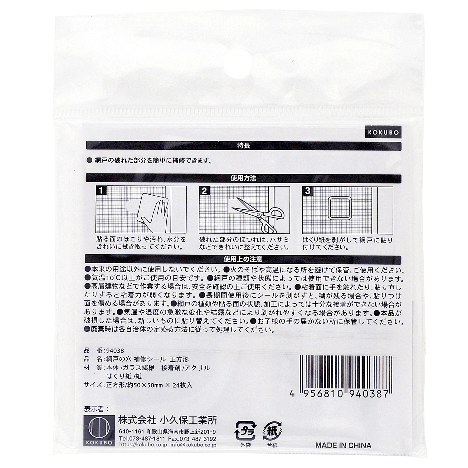 網戸の穴補修シール 正方形 品番:94038 JAN:4956810940387