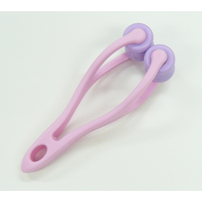 ◎取っ手部分を軽く握り、手のひらを挟むようにし、ローラーをころがしてマッサージをします。