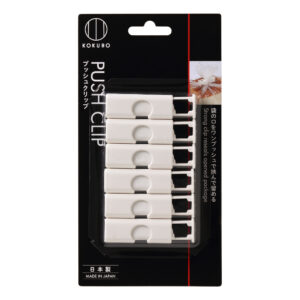 ◎両端をプッシュして、中央の穴に袋をはさんで留めるクリップ。