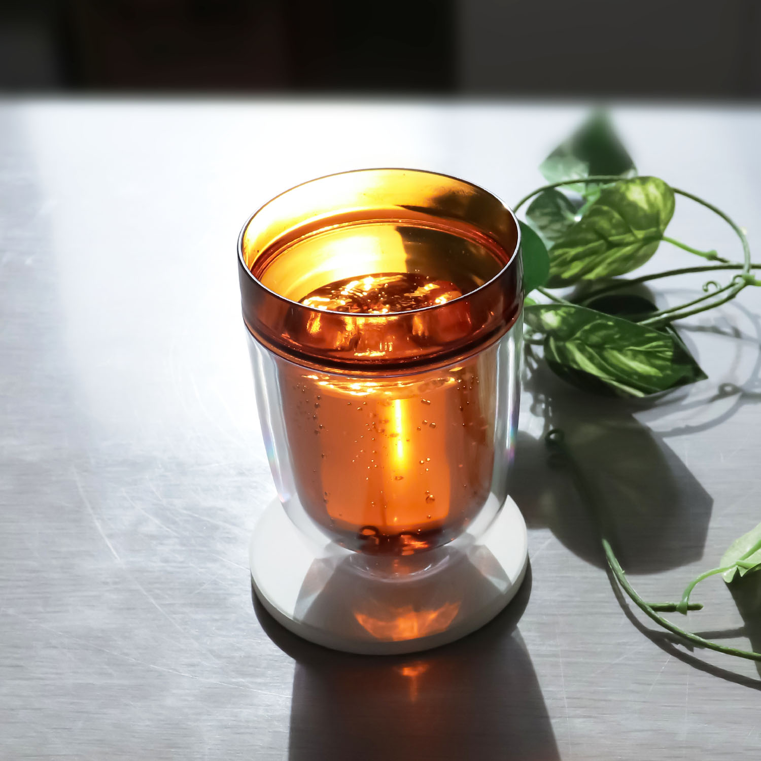 ◎グラスが二重構造になっていて、熱が伝わりにくく、結露しにくい。