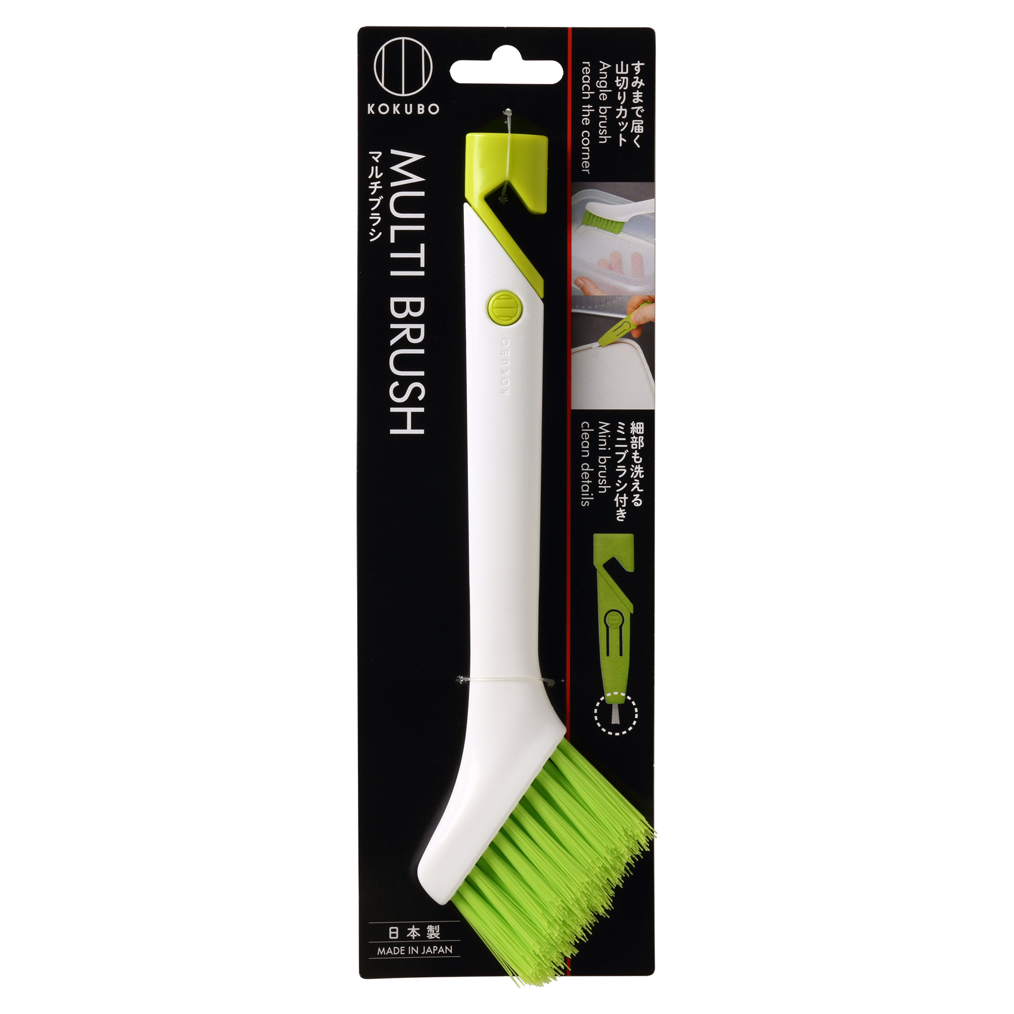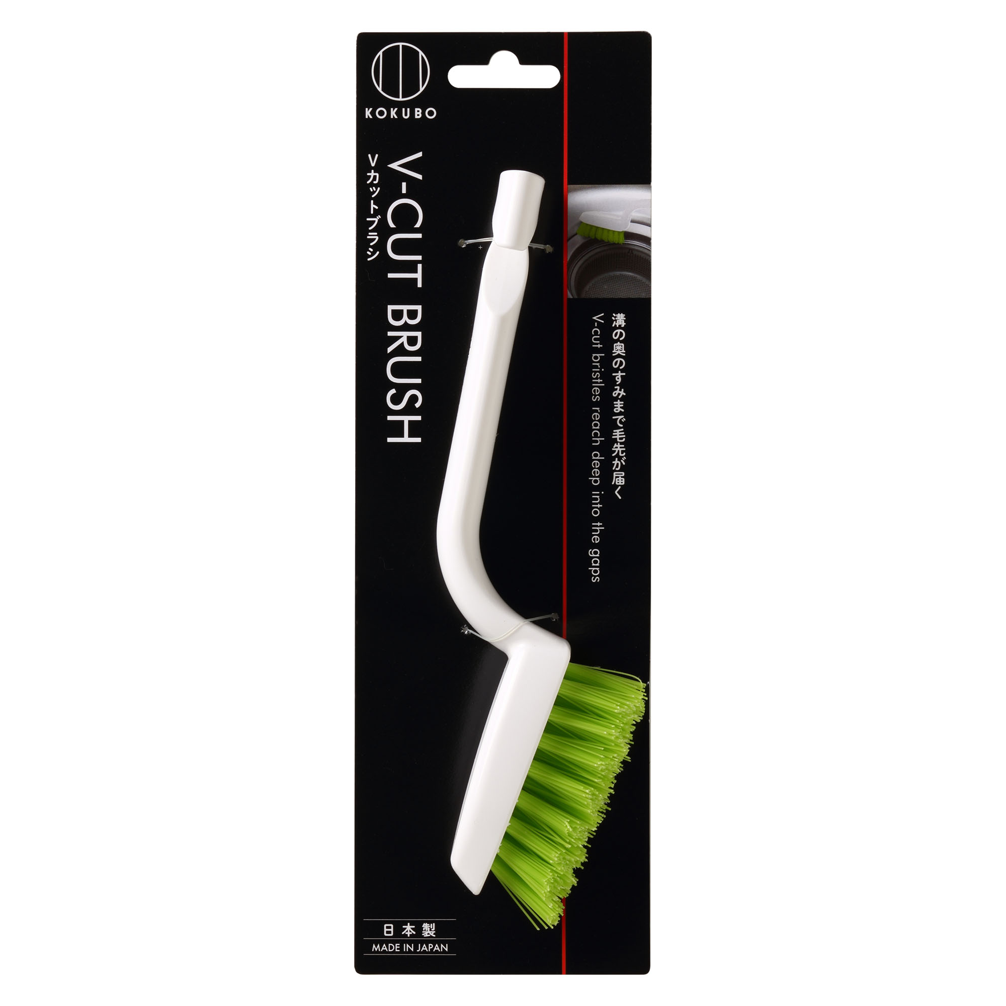 ◎ブラシの先端が曲がっていて、コーナー部分の汚れもスッキリ落とします。