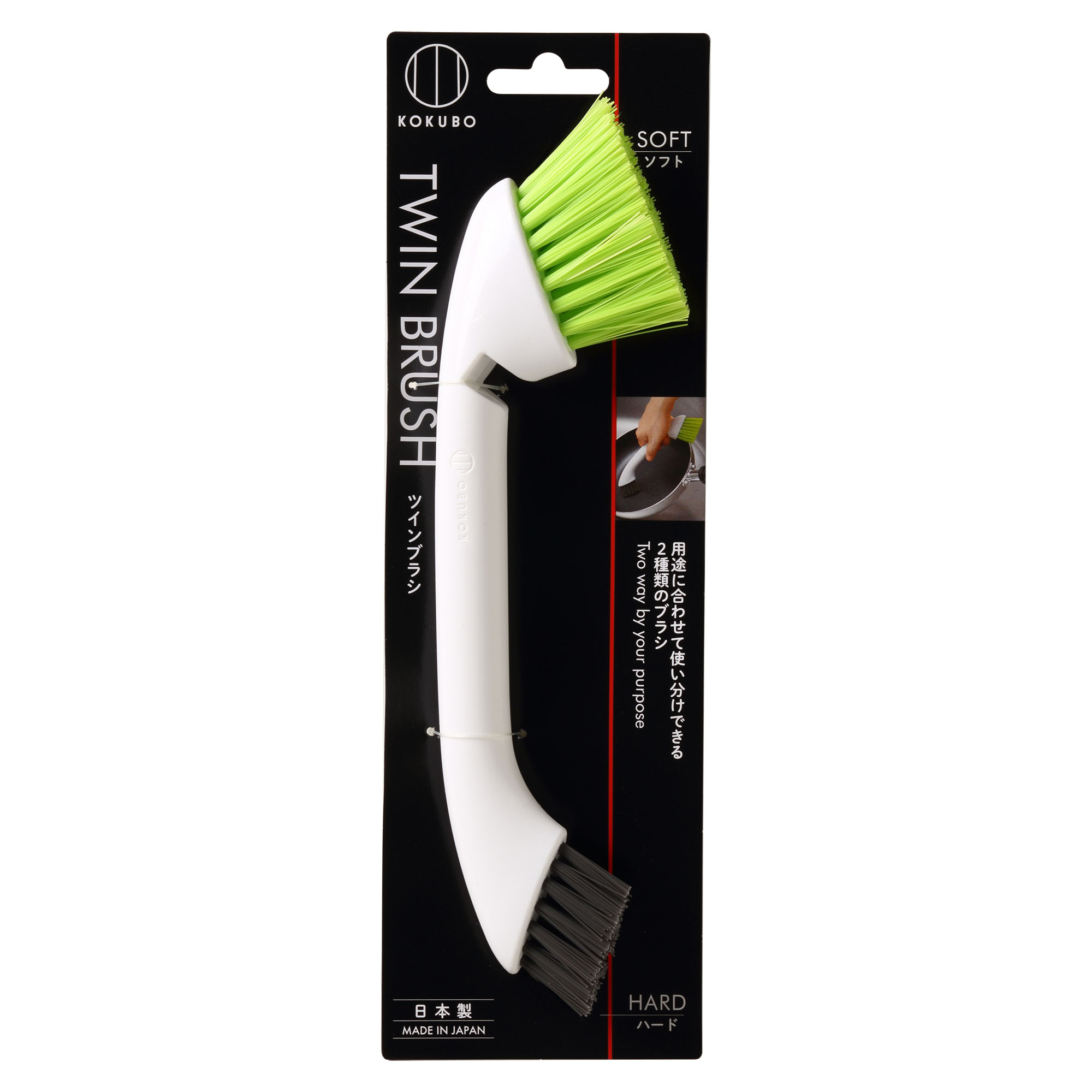 ◎柄付きタワシ。柄はポリプロピレン製。ブラシ部分は天然素材のコイアファイバーを使用。