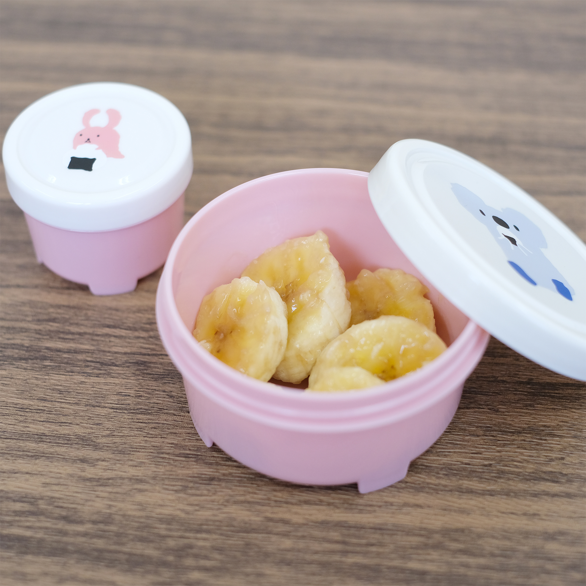 「Little Pocketsランチシリーズ」は樹脂製のお弁当箱として、スタンダードな四角形の「ランチボックス」、わっぱのような形の「小判形お弁当箱」と「ランチベルト」、三角おにぎりとおかずをコンパクトに詰められる「おにぎりお弁当箱」があります。副菜やフルーツなどを入れるのに便利な「小分けカップ」「スクエアボックス」は、それぞれS・L 2個をセットにしました。箸と先割れスプーンをケースに固定できる「カトラリーセット」、シンプルな「箸&箸ケース」、温冷ドリンクどちらにも使える「タンブラー」、保温保冷効果がある「ランチバッグ」もあります。カラーはブルーとピンク。食べる量やランチスタイルに合わせて、好みのお弁当用品を、かわいいキャラクターのイラスト付きで揃えられます。ほっこり和む仲良しキャラで、お弁当タイムを楽しく。昼食はもちろん、朝・夜・間食、塾弁など様々な用途に。