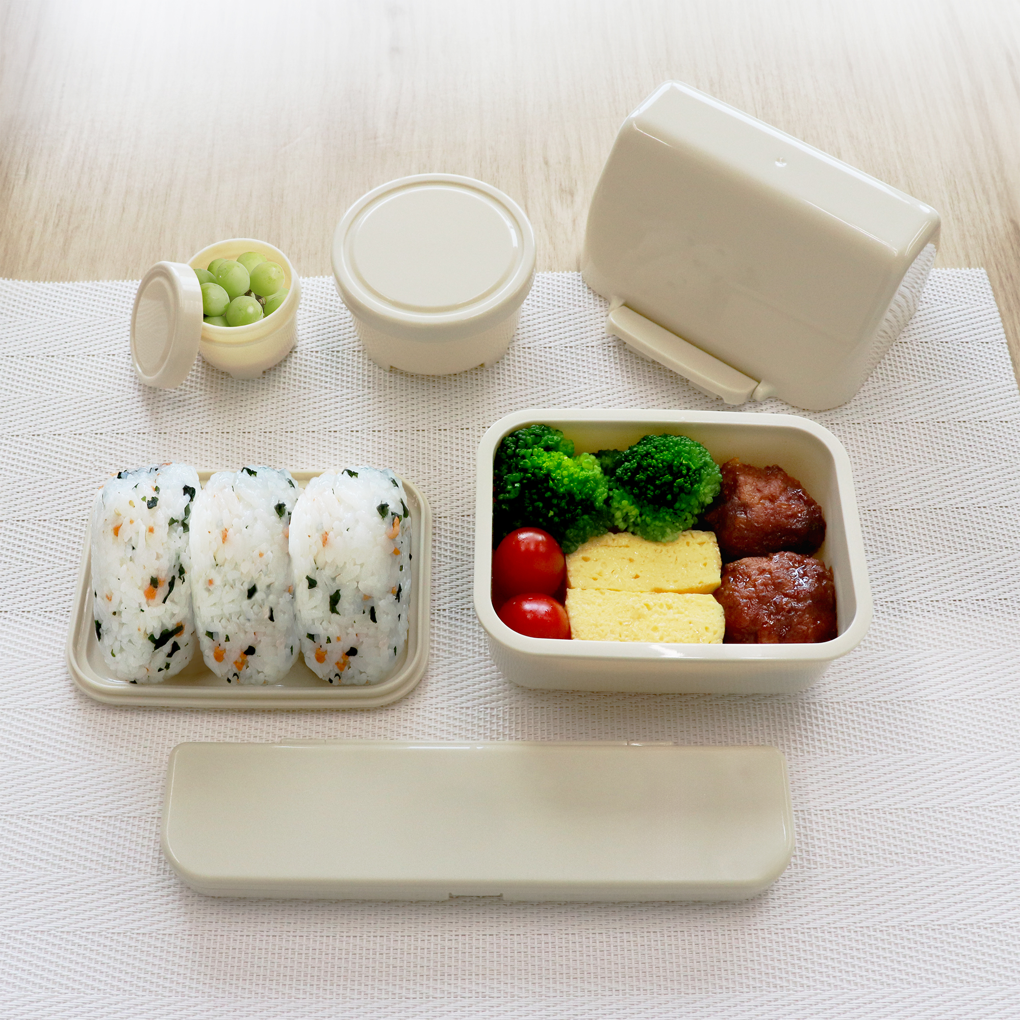 カラーはベージュとグリーン。食べる量やランチスタイルに合わせて、好みのお弁当用品をやさしいトーンで揃えられます。自分用に、お子様やご家族に。昼食はもちろん、朝食、夜食、間食、塾弁など様々な用途に。